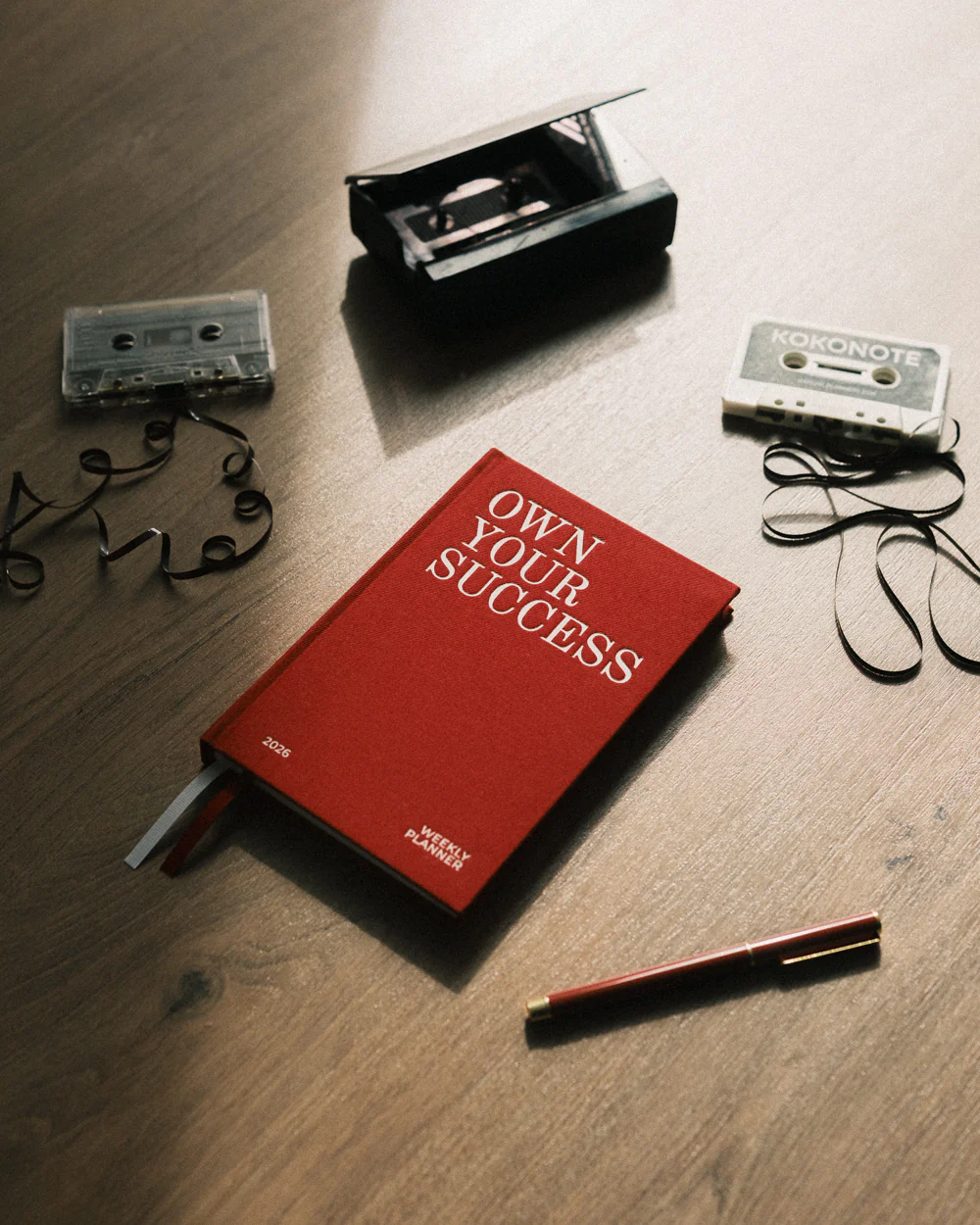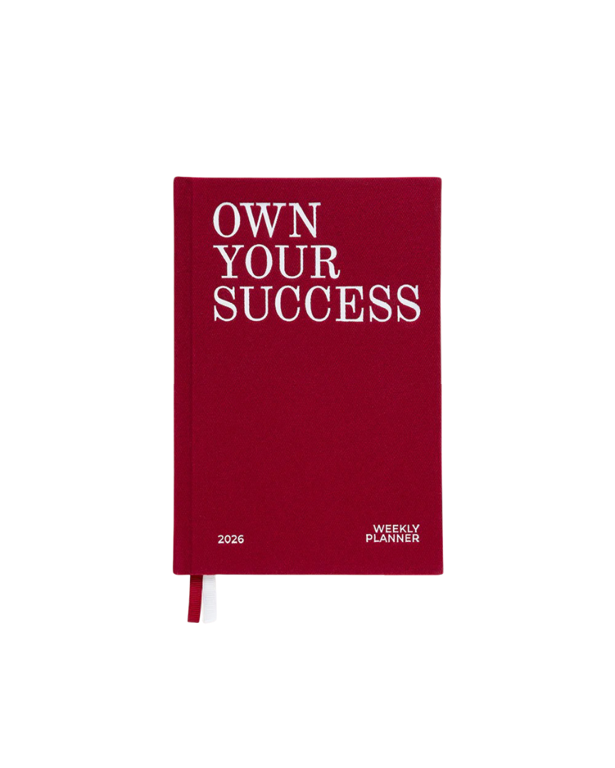 Tapa dura en tela burdeos; papel 100 g/m² libre de ácido; interior con planificación anual, calendario mensual y vista semanal amplia. Ideal para quienes buscan estética limpia y uso diario. Incluye marcador de tela y bolsillo interior trasero.