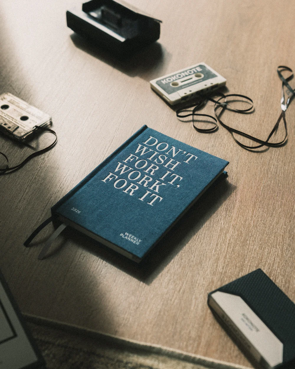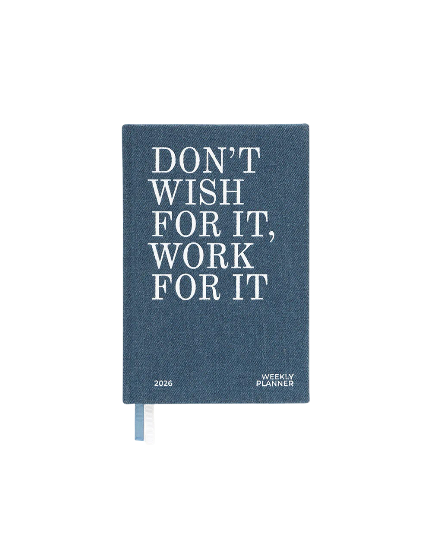 Agenda Denim minimalista con tapa dura en acabado denim. En el interior cuenta con papel 100 g/m² libre de ácido; planificación anual, calendario mensual y vista semanal amplia. Ideal para quienes buscan estética limpia y uso diario. Incluye marcador de tela y bolsillo interior trasero.