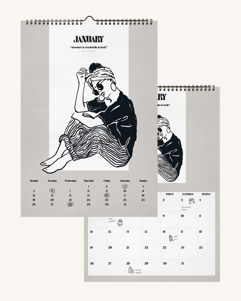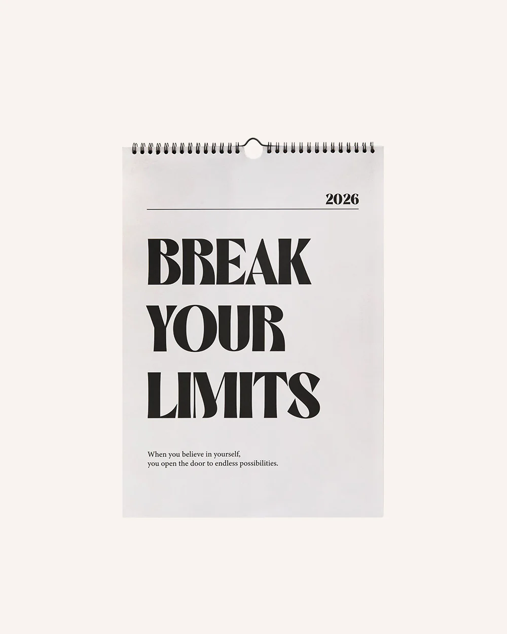 Calendario 2026 de pared Break your Limits, en tonos beige y negro.