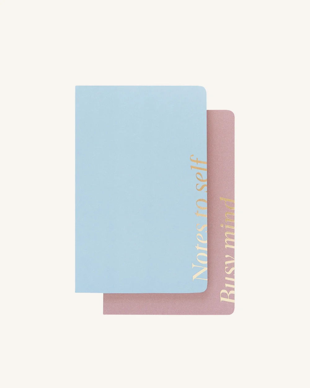 Set de dos cuadernos tamaño A5 en tonos rosa y azul pastel. En el interior encontramos una colección de hojas punteadas.
